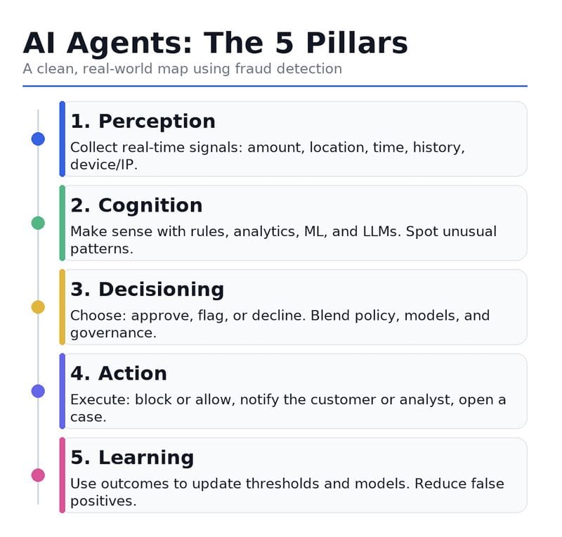 Start with one use case. Write the policy for the decision step first. Wire perception and cognition to feed that policy. Add safe actions. Close the loop with learning. Review outcomes every week. When the loop is stable, scale to the next workflow.